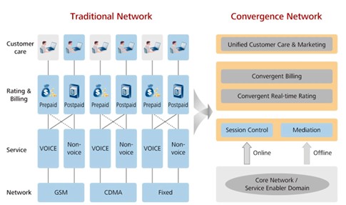 在繼承智能網(wǎng)的大容量、高性能、高可靠性的實(shí)時系統(tǒng)技術(shù)和計(jì)費(fèi)系統(tǒng)的靈活批價及計(jì)費(fèi)機(jī)制的基礎(chǔ)上,華為從2004年開始研究基于下一代融合計(jì)費(fèi)引擎的計(jì)費(fèi)解決方案。2006年7月在山東電信實(shí)現(xiàn)第一個融合計(jì)費(fèi)解決方案的商用,同年參與并通過了中國電信上海研究院組織的在線計(jì)費(fèi)系統(tǒng)選型測試。
