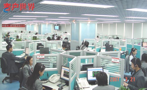 2003年,中信銀行信用卡中心客戶服務(wù)中心在深圳成立,歷時三年多,客服中心已經(jīng)擁有近300個座席,具備服務(wù)200多萬客戶和400多個網(wǎng)點(diǎn)的服務(wù)能力,成為中信銀行的一張人氣名片?头行默F(xiàn)有客服代表200多名,平均年齡不到26歲。中信銀行信用卡中心7*24小時的普通話、廣東話、英語的咨詢服務(wù)就是由他們提供。
