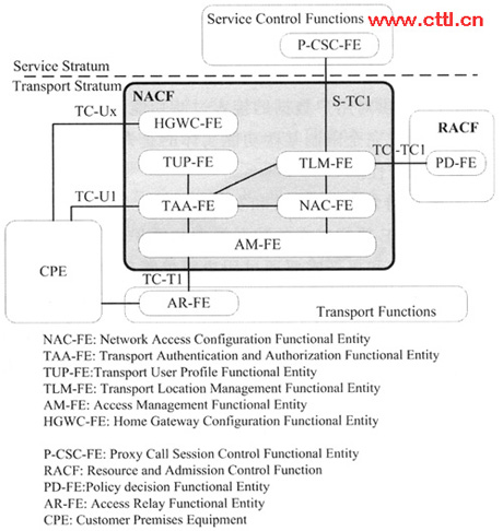 ITU-T沒有設立單獨的項目研究NACF,只在NGN的功能需求和架構建議草案中對NACF有所提及,所以對網(wǎng)絡附著子系統(tǒng)的研究相對滯后,研究內(nèi)容主要包括:NACF的功能架構、該功能架構中包含的邏輯功能實體等。