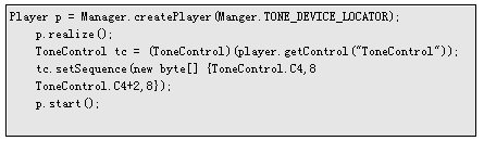如果要播放序列音,則必須使用ToneControl。使用一個特別的定位器來創(chuàng)建一個 Player對象,獲得ToneControl,設置其命令序列,然后啟動播放器,如: