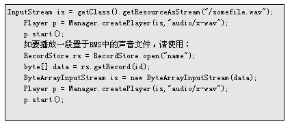 MMAPI提供的類和接口都在javax.microedition.media中,在程序中使用MMAPI時,首先應該引用這些包,否則程序無法編譯。
