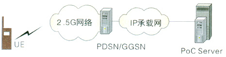 PS方案指直接在GPRS或CDMA 1X核心網(wǎng)絡(luò)上增加PoC服務(wù)器來實(shí)現(xiàn)PoC業(yè)務(wù);這種方案是國際標(biāo)準(zhǔn)發(fā)布之前的普遍方案。該方案結(jié)構(gòu)簡(jiǎn)單,成本低,PoC服務(wù)器直接與GGSN/PDSN相連,負(fù)責(zé)PoC業(yè)務(wù)的提供,其網(wǎng)絡(luò)結(jié)構(gòu)如圖3所示:
