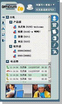 這一系列產品的特點主要是針對國內網絡的特點研發(fā),適應能力強,兼容性廣。并且配套提供 IP PBX 綁定的聊天工具,該工具界面(如圖)同QQ、MSN貌似。按所分配的賬戶密碼登陸,可對個人和PBX的彩鈴和分機狀態(tài)調整,可以按需要更換指定總機和交接總機,在小助理上可以使用個人電話通訊錄,支持在線信息群發(fā)和手機短信群發(fā)等功能。