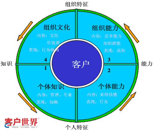 在訪談中發(fā)現(xiàn),淮安中心建立了以能力為核心的管理體系,該體系給了我很多的啟發(fā)。該體系明確了整個中心的管理思維、管理方法和管理對象。同時,該體系通過圖示的方法進行傳播,保證了整個中心人員對中心管理思維、管理方法和管理對象理解的一致性,進而保證了整個組織成員行動的一致。其組織能力循環(huán)圖如下: