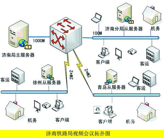 根據(jù)濟(jì)南鐵路局的視頻會(huì)議規(guī)劃和網(wǎng)絡(luò)現(xiàn)狀,視維(即山大聯(lián)潤信息科技有限公司)與路局共同設(shè)計(jì)了會(huì)議系統(tǒng)解決方案,在濟(jì)南、青島、徐州部署4臺(tái)高性能視頻服務(wù)器系統(tǒng),利用路局內(nèi)網(wǎng)和公網(wǎng)搭建了覆蓋全路的視頻會(huì)議服務(wù)平臺(tái)。路局的兩臺(tái)服務(wù)器可以互備,提供了服務(wù)器系統(tǒng)和網(wǎng)絡(luò)系統(tǒng)的雙備份,大大提高了系統(tǒng)的可靠性。