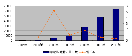中國移動即時通訊用戶規(guī)模發(fā)展狀況(2005-2011)