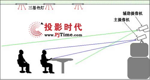 建議大型會議室至少配置2臺攝像機(jī),在會場的前后部各放一臺,安裝方式可采用吊掛天棚、吊掛在墻上等。