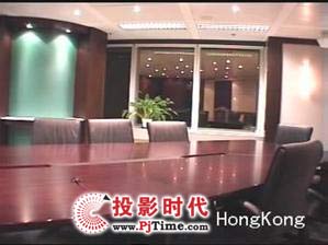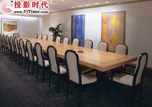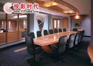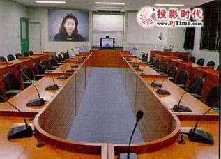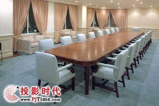 該會議室采用淺灰色色調(diào),與普通會議室沒有太大差別,采用頂部吊掛的投影機(jī)作為視頻的輸出設(shè)備,節(jié)省了會議室的空間,系統(tǒng)設(shè)備配置略復(fù)雜,具體如下: