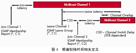 。5)平均頻道離開延時(shí):從發(fā)出IGMP leave消息直到接收到該頻道的最后一個(gè)組播包之間的時(shí)間。通常頻道離開延時(shí)越短越好。