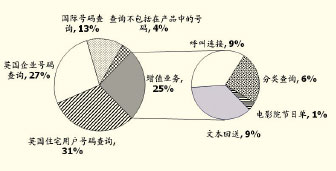 英國各類號碼查詢業(yè)務量的比重(呼叫次數(shù))