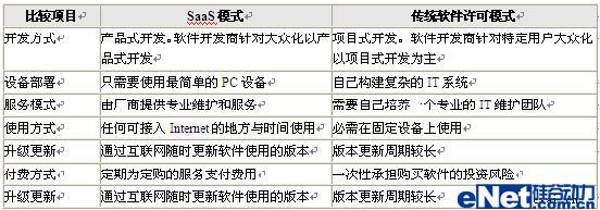 通過上面的分析我們總結出SaaS模式與傳統(tǒng)軟件許可模式的區(qū)別: