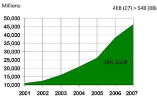 如今的全球化經(jīng)濟(jì)正在促使企業(yè)打破同事、合作伙伴、供應(yīng)商和客戶之間的地域界限。在許多情況下,面對面的溝通協(xié)作既花費昂貴又不合時宜,這推動企業(yè)開始轉(zhuǎn)向召開語音會議。對語音會議需求的復(fù)合年增長率(CAGR)已達(dá)到28%,每年的通話時間很快將超過500億分鐘,如圖1所示。