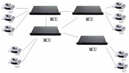 多MCU連接星型組網(wǎng)結(jié)構見圖所示,其中VCT是視頻會議終端VideoConferenceTerminal的縮寫