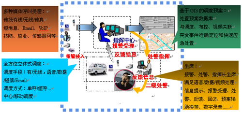 接處警應用系統(tǒng)是應急聯(lián)動中心的核心部分,系統(tǒng)在保證“先進、實用、可靠”的前提下,與全市應急聯(lián)動單位實現(xiàn)互聯(lián)互通、信息共享;把接處警系統(tǒng)與GPS、有無線通信、視頻監(jiān)控、預案指揮等技術系統(tǒng)有機的結(jié)合在一起,形成“以計算機網(wǎng)絡為基礎,以有線、無線通信為紐帶,以接處警信息傳遞、處理為核心,以資源共享和計算機輔助決策為載體的綜合性系統(tǒng)工程”,從而提高應急聯(lián)動中心的指揮調(diào)度、輔助決策等綜合處置能力,滿足在復雜條件下指揮、調(diào)度、協(xié)調(diào)、處置城市不同種類和等級的突發(fā)事件的實戰(zhàn)需要。