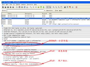 以上是一個(gè)用戶開機(jī)的信令過(guò)程,在BSSMAP消息層中,可以獲取CGI=0X0457-2222;在DTAP消息層中,可以獲得獲得本次消息類型為L(zhǎng)ocationUpdatingREQ,同時(shí)用戶標(biāo)識(shí)為TMSI=0X8c000093,通過(guò)對(duì)對(duì)之前或之后(簽權(quán)、IDREQ/RSP)等信令的關(guān)聯(lián),可以獲得用戶IMSI、MSISDN和CGI的對(duì)應(yīng)關(guān)系。其它信令過(guò)程,如周期性位置更新、短信收發(fā)、主被叫等,和以上分析過(guò)程類似。
