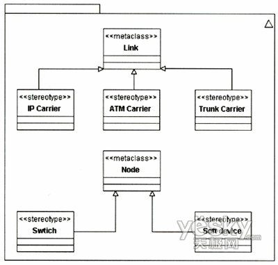 該擴(kuò)展針對(duì)Link和Node和兩個(gè)元類(lèi)增加了NGN中關(guān)于承載和節(jié)點(diǎn)的定型?梢愿鶕(jù)需要對(duì)該模型作進(jìn)一步擴(kuò)展,如可以增加關(guān)于接入網(wǎng)承載的定型等。