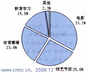 表2 2007年8月美國(guó)手機(jī)用戶主要訂閱的手機(jī)電視內(nèi)容