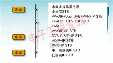 標清(SD)對于大眾市場來說是一個合乎邏輯的選擇。ODM廠商不管選用哪種操作系統(tǒng)(Windows CE或Linux)都能與NXP公司的IP-STB平臺相結合,為本地市場生產(chǎn)所期望的產(chǎn)品。
