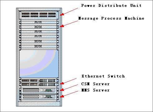 整個SMSS系統(tǒng)設(shè)備采用標(biāo)準(zhǔn)19英寸、42U高機架,包含了MPM、CSM及其它等功能實體。