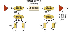 圖2當(dāng)帶寬增加需要波長(zhǎng)重用時(shí),可添加波長(zhǎng)阻擋器到需要的節(jié)點(diǎn)上。