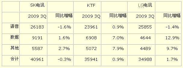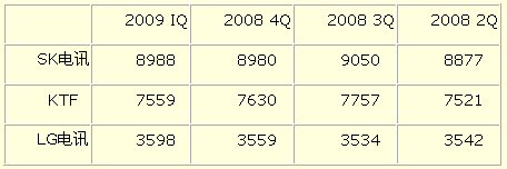 韓國(guó)三大移動(dòng)通信公司ARPU(平均每用戶(hù)值)比較