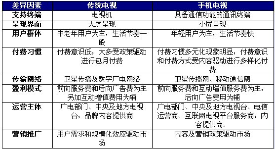 另外通過在終端支撐、網(wǎng)絡傳輸、盈利模式和覆蓋用戶來看,手機電視產(chǎn)業(yè)和傳統(tǒng)電視也存在著比較大的差異: