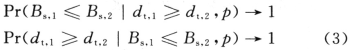 式中:rs表示信源編碼得到的比特;Bs表示成功傳輸rs比特信源數(shù)據(jù)實(shí)際耗用的帶寬資源。對(duì)一幀編碼好的視頻圖像,其源編碼比特已經(jīng)確定,所以,式(1)中的吞吐效率將只取決于所耗用的帶寬資源Bs。對(duì)接收端重建失真,由于在傳輸出錯(cuò)的情況下可能會(huì)采取重傳和解碼端后處理恢復(fù)的手段,最終的失真將依賴(lài)于信道本身。對(duì)于吞吐效率和接收端重建失真之間的關(guān)系,理論上可以得到如下幾個(gè)關(guān)系式: