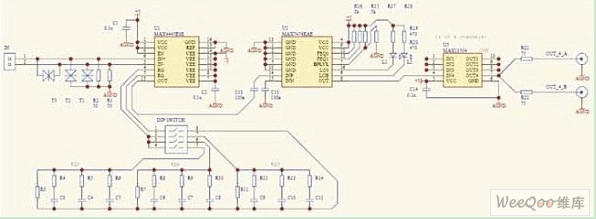 在本方案中,我們采用MAX4445配合外部阻容均衡網(wǎng)絡(luò)固定補(bǔ)償特定的傳輸距離,并結(jié)合MAX7474自動均衡的特點(diǎn)來補(bǔ)償網(wǎng)線質(zhì)量、安裝距離和阻容器件參數(shù)分散性等帶來的差異,很好地解決了1200米視頻信號的自適應(yīng)傳輸。