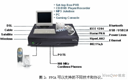 多年來,低成本FPGA器件已經成為機頂盒和視頻網關的關鍵器件,可提供視頻增強、丟失像素替換、視頻轉換、產品靈活性以及產品差異等功能。此外,這些器件還允許生產商方便地支持不同的技術和協(xié)議,如圖2所示。