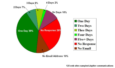 該報(bào)告進(jìn)一步總結(jié)到,60%的網(wǎng)站客戶希望更多互動但許多電子商務(wù)企業(yè)無法回應(yīng)電子郵件且不能提供足夠的電話支持。也有很多電子商務(wù)企業(yè)提供電子郵件支持,比如說etoys,但對于如潮水般洶涌而來的電子郵件聯(lián)絡(luò)他們顯然沒有什么準(zhǔn)備以至于處理結(jié)果符合客戶預(yù)期的郵件少之又少。如果處理的好