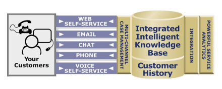 Technologies”是一家非常著名的多接觸點(diǎn)呼叫中心供應(yīng)商,這家公司建議采用“通用事故”追蹤機(jī)制,它強(qiáng)調(diào)報(bào)表和歷史紀(jì)錄必須作為任何一個多接觸點(diǎn)聯(lián)絡(luò)中心不可或缺的組成部分!癛ightnow”提供的以下插圖很清楚地向我們展示了多渠道知識庫集成是如何被強(qiáng)制執(zhí)行的。