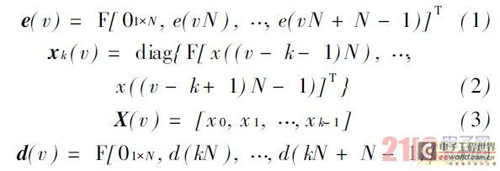 式中,^hk = [ ^hkN ,^hkN + 1 ,… ,^hkN + N- 1 ] T ,k = 0,1,2,,K - 1,它表示濾波器估計(jì)的第k 個(gè)子濾波器的系數(shù)。