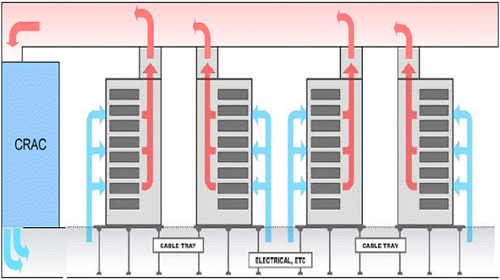 現(xiàn)在,大多數(shù)企業(yè)都在其服務(wù)器所在樓層的周圍部署機(jī)房空調(diào)(CRAC)裝置來解決數(shù)據(jù)中心產(chǎn)生的熱量。許多公司還采用“熱通道-冷通道”式硬件配置,針對指定的服務(wù)器機(jī)柜只配置了熱風(fēng)排出或者冷風(fēng)吸入。這就產(chǎn)生了對流循環(huán),從而形成冷卻的連續(xù)氣流。然而,雖然這類技術(shù)基本足以應(yīng)對傳統(tǒng)數(shù)據(jù)中心的需求,但卻往往無法處理云基礎(chǔ)架構(gòu)產(chǎn)生的巨大熱量。因此,公共和私有云環(huán)境通常需要更先進(jìn)、更強(qiáng)大的冷卻技術(shù)。