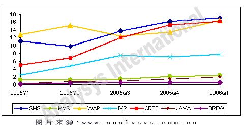 圖1 2006年分季度主要移動(dòng)增值業(yè)務(wù)的市場規(guī)模
