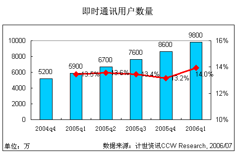 2006第一季度中國(guó)即時(shí)通訊用戶(hù)數(shù)接近1億