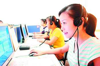 長(zhǎng)沙餐飲訂座呼叫中心的接線員正忙著為顧客聯(lián)系訂座和打折等事宜