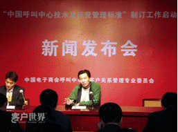 2月7日,中國(guó)電子商會(huì)呼叫中心與客戶關(guān)系管理專業(yè)委員會(huì)(CNCCA)在北京信息產(chǎn)業(yè)部萬壽路辦公區(qū)召開“中國(guó)呼叫中心技術(shù)及運(yùn)營(yíng)管理規(guī)范”制訂工作啟動(dòng)新聞發(fā)布會(huì)。在京各主要新聞媒體高度關(guān)注在國(guó)家宏觀政策轉(zhuǎn)向服務(wù)外包的大背景下,呼叫中心中國(guó)標(biāo)準(zhǔn)的出臺(tái)將為產(chǎn)業(yè)的發(fā)展和國(guó)際競(jìng)爭(zhēng)格局的變化帶來如何的影響。呼叫中心行業(yè)各知名廠商、運(yùn)營(yíng)商、服務(wù)提供商代表出席新聞發(fā)布會(huì)。會(huì)議同時(shí)發(fā)布了《2007年中國(guó)呼叫中心運(yùn)營(yíng)標(biāo)桿管理報(bào)告》。