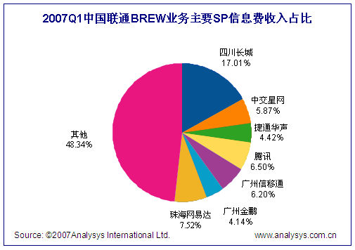 2007年第1季度中國(guó)聯(lián)通BREW市場(chǎng)整體規(guī)模達(dá)0.51億人民幣