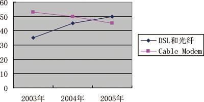 市場研究公司ParksAssociates最新發(fā)布的研究報告稱,2007年美國住宅用戶的寬帶網(wǎng)普及率將超過50%,美國住宅寬帶網(wǎng)用戶將超過6000萬,這些用戶都可以通過寬帶接入享受三種業(yè)務(wù)捆綁服務(wù)。由于電信公司的寬帶接入技術(shù)占優(yōu)勢,因而在三種業(yè)務(wù)捆綁服務(wù)方面,電信公司占有競爭優(yōu)勢。所以,凡是在兩家有競爭的地方,有線電視公司都無例外地降低了價格,并失去了相當一部分傳統(tǒng)市場。