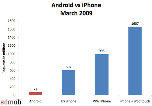 對(duì)iPhone和Android兩大平臺(tái)來(lái)說(shuō),獨(dú)立應(yīng)用程序的增長(zhǎng)一直都是廣告索閱量的主要驅(qū)動(dòng)力之一。在iPhone和Android平臺(tái)上每推出一個(gè)應(yīng)用程序商店以后,AdMob都會(huì)追蹤廣告索閱量的增長(zhǎng),發(fā)現(xiàn)iPhone的月增長(zhǎng)率為88%,Android則僅為47%,但均遠(yuǎn)高于其他平臺(tái)的增長(zhǎng)率。
