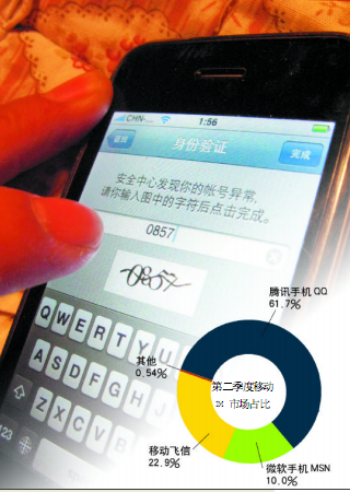 從查找問題的角度看,這也未必是壞事。談到移動飛信詐騙短信事件,中移動數(shù)據(jù)中心某人士對記者感慨,飛信能被犯罪分子盯上,說明經(jīng)過三年多的發(fā)展,飛信今天的用戶規(guī)模,已經(jīng)有行業(yè)話語權(quán)了。據(jù)數(shù)據(jù)統(tǒng)計,到今年第二季度,中國移動手機客戶端飛信用戶數(shù)達到1.84億,環(huán)比增長16.1%,活躍賬戶數(shù)達到2045萬,活躍用戶市場占有率為22.9%。這一數(shù)據(jù)足可以說明,電信運營商利用移動IM業(yè)務打造個人移動門戶戰(zhàn)略初步有了勝算。