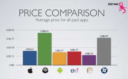 圖:為蘋果和Android等各種應用的平均售價比較