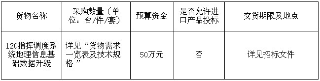 項(xiàng)目名稱:120指揮調(diào)度系統(tǒng)地理信息基礎(chǔ)數(shù)據(jù)升級采購項(xiàng)目
