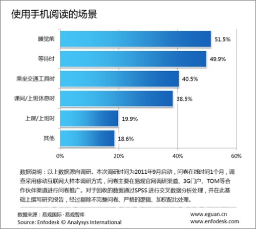 據(jù)易觀國際(Analysys International)最新報告《2011年中國手機閱讀市場用戶研究報告》(以下簡稱《報告》)研究發(fā)現(xiàn),報紙、生活資訊、社交資訊等類微內(nèi)容超越文學作品等長內(nèi)容成為手機閱讀用戶的習慣性閱讀內(nèi)容。