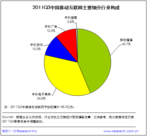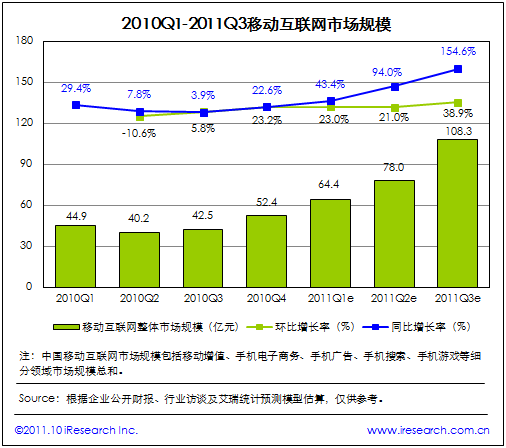 2011Q3中國移動互聯網市場規(guī)模達108.3億元