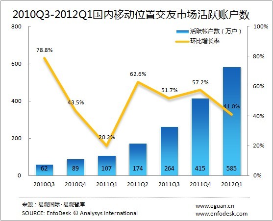 易觀:2012Q1國(guó)內(nèi)移動(dòng)位置交友應(yīng)用規(guī)模達(dá)4338萬(wàn)戶