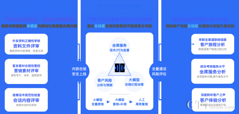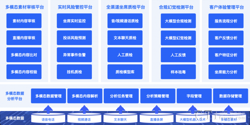 依托多項AI能力融合應(yīng)用,升級后的【多模態(tài)合規(guī)分析平臺】能處理對話數(shù)據(jù)、圖片、音頻和視頻等各種格式的信息,同時采用大小模型組合式AI合規(guī)檢查機(jī)制,對各個渠道的客戶互動數(shù)據(jù)進(jìn)行聚合分析,實(shí)現(xiàn)大模型構(gòu)成坐席和客戶間全場景多模態(tài)數(shù)據(jù)檢測與分析,以及客戶體驗(yàn)升級。