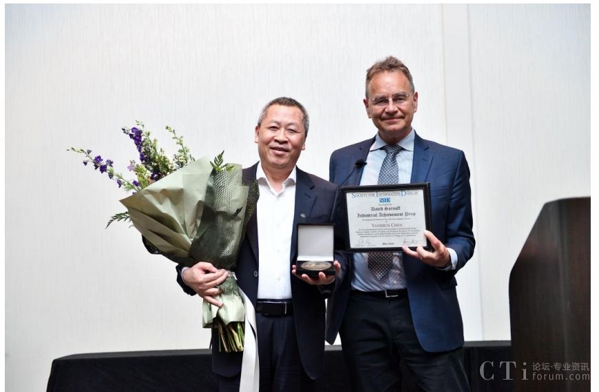 David Sarnoff產(chǎn)業(yè)成就獎(jiǎng)設(shè)立于2018年,每年僅授予全球顯示產(chǎn)業(yè)的一位杰出領(lǐng)袖,以表彰其卓越領(lǐng)導(dǎo)力和長(zhǎng)遠(yuǎn)影響。陳炎順董事長(zhǎng)在發(fā)表獲獎(jiǎng)致辭時(shí)表示,感謝SID榮譽(yù)與獎(jiǎng)項(xiàng)委員會(huì)授予的此項(xiàng)榮譽(yù),并特別感謝業(yè)界伙伴的支持以及全體京東方人為此刻榮譽(yù)的不懈努力!榮譽(yù)屬于全體京東方人!五年來,京東方始終保持著創(chuàng)新不斷的步伐,特別是我們深刻的洞察半導(dǎo)體顯示和相關(guān)技術(shù),比如物聯(lián)網(wǎng)技術(shù)、數(shù)字技術(shù)、人工智能技術(shù),尤其針對(duì)目前快速發(fā)展的IOT技術(shù)的融合趨勢(shì),創(chuàng)新性提出“屏之物聯(lián)”的發(fā)展戰(zhàn)略,為半導(dǎo)體顯示產(chǎn)業(yè)發(fā)展打開廣闊的空間和無限的可能,也為科技企業(yè)的戰(zhàn)略升維提供了思維邏輯和方法論!