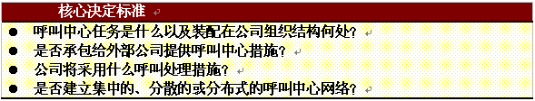 。。當(dāng)一個公司考慮將呼叫中心納入其整體服務(wù)策略的時候,在具體步驟開始以前必須作一些基本的決定。重要的是評估該公司當(dāng)前的服務(wù)策略并考慮可能的選擇范圍。本章簡要總結(jié)了建立呼叫中心可能發(fā)生的一些典型的運營管理問題。