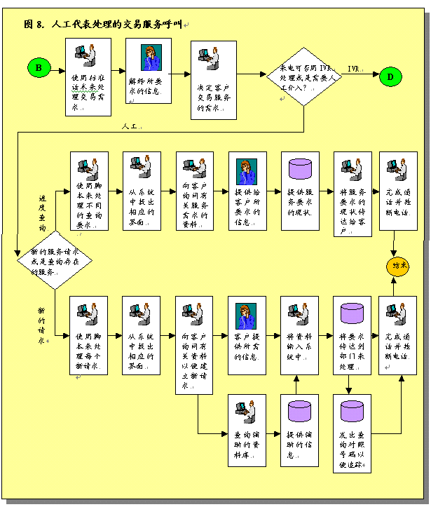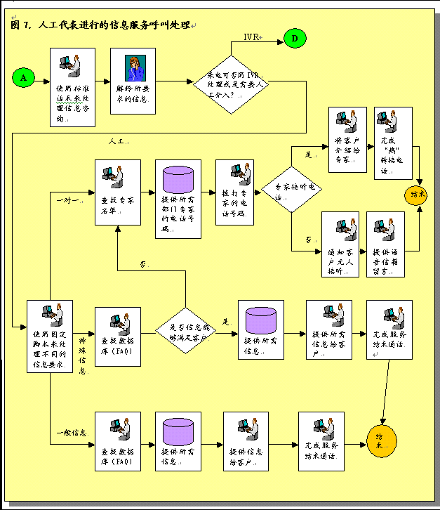 圖3概述了呼叫中心服務呼叫處理過程。描述了進入呼叫中心系統(tǒng)的各種呼叫如何完成處理過程,或者由真人代表完成,或者是通過IVR技術(shù)完成。